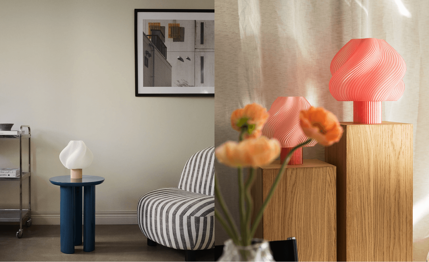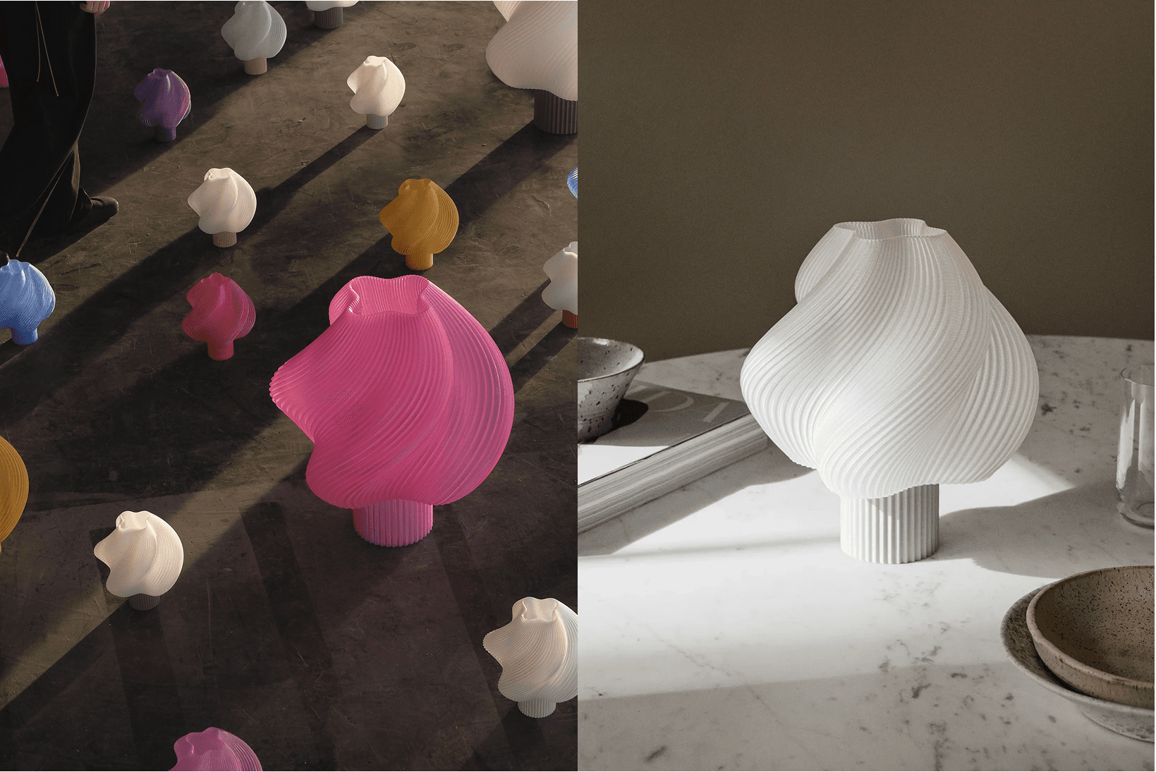 Crème Atelier approaches lighting and objects as sculptural design pieces. Founded in Stockholm, the brand creates lamps, vases and furniture using advanced 3D-printing techniques and recycled materials, blending soft swirling forms with a sense of playful elegance. The collection balances innovation and warmth, turning everyday objects into visual centrepieces rather than background elements. For retailers, Crème Atelier offers a distinctive design category that combines sustainability, recognisable forms, and strong visual impact, bringing contemporary Scandinavian design into the home.
